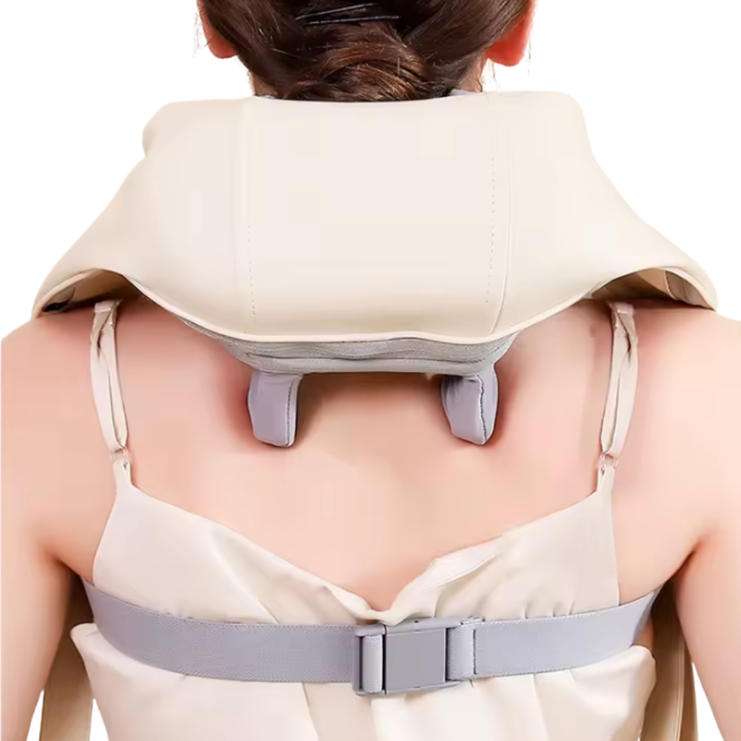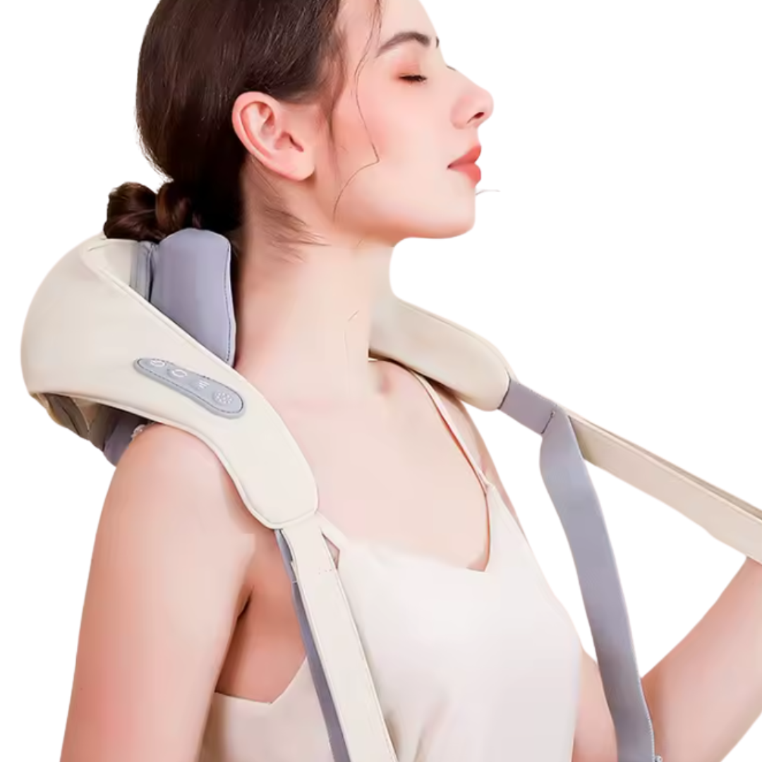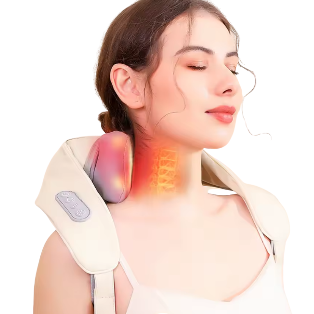 Du sätter på Nacksupporten, känner hur värmen sprider sig och de roterande massageknutarna börjar lösa upp spänningarna.